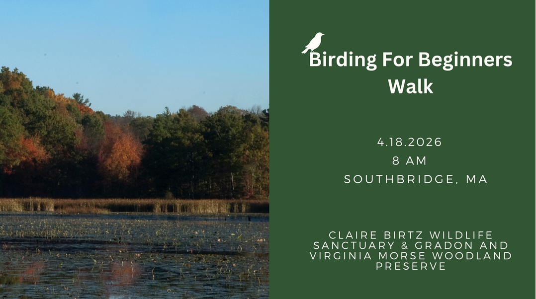 We will take a mile long hike along Morse Pond to learn about some of the common birds found in the area and the species we might see based on the sanctuary’s habitat types. Along the way, we’ll share tips and tricks for identifying birds by sight and sound. You’ll want to bring a pair of binoculars along if you have them!